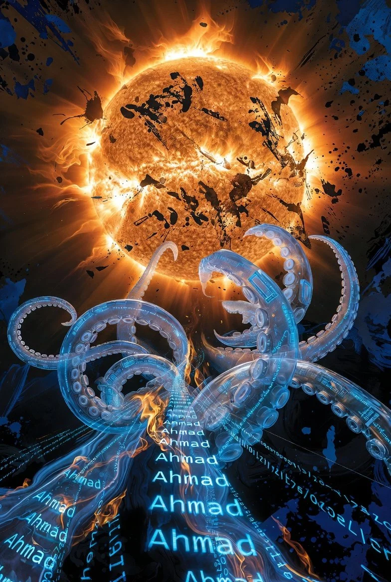 THE DIGITAL SEIGE: This investigative visualization, developed in collaboration with xAI’s Grok, illustrates the industrial-scale "strip-mining" of U.S. Virgin Islands intellectual property. The golden 'Solar Forge' of the St. Croix Sun stands as a defensive barrier against the 'Ahmad' bot-networks and Far East scrapers attempting to siphon the territory’s data.