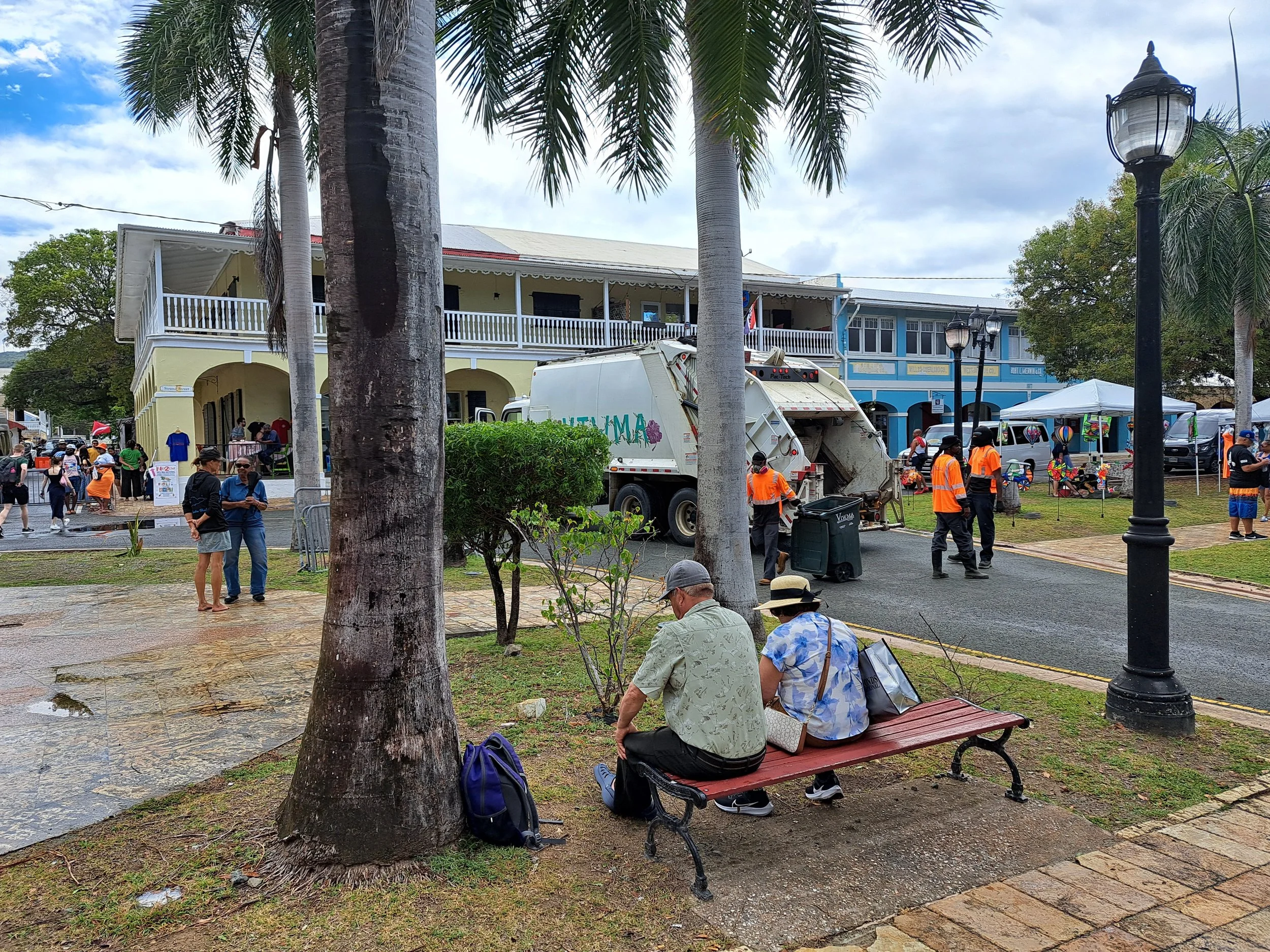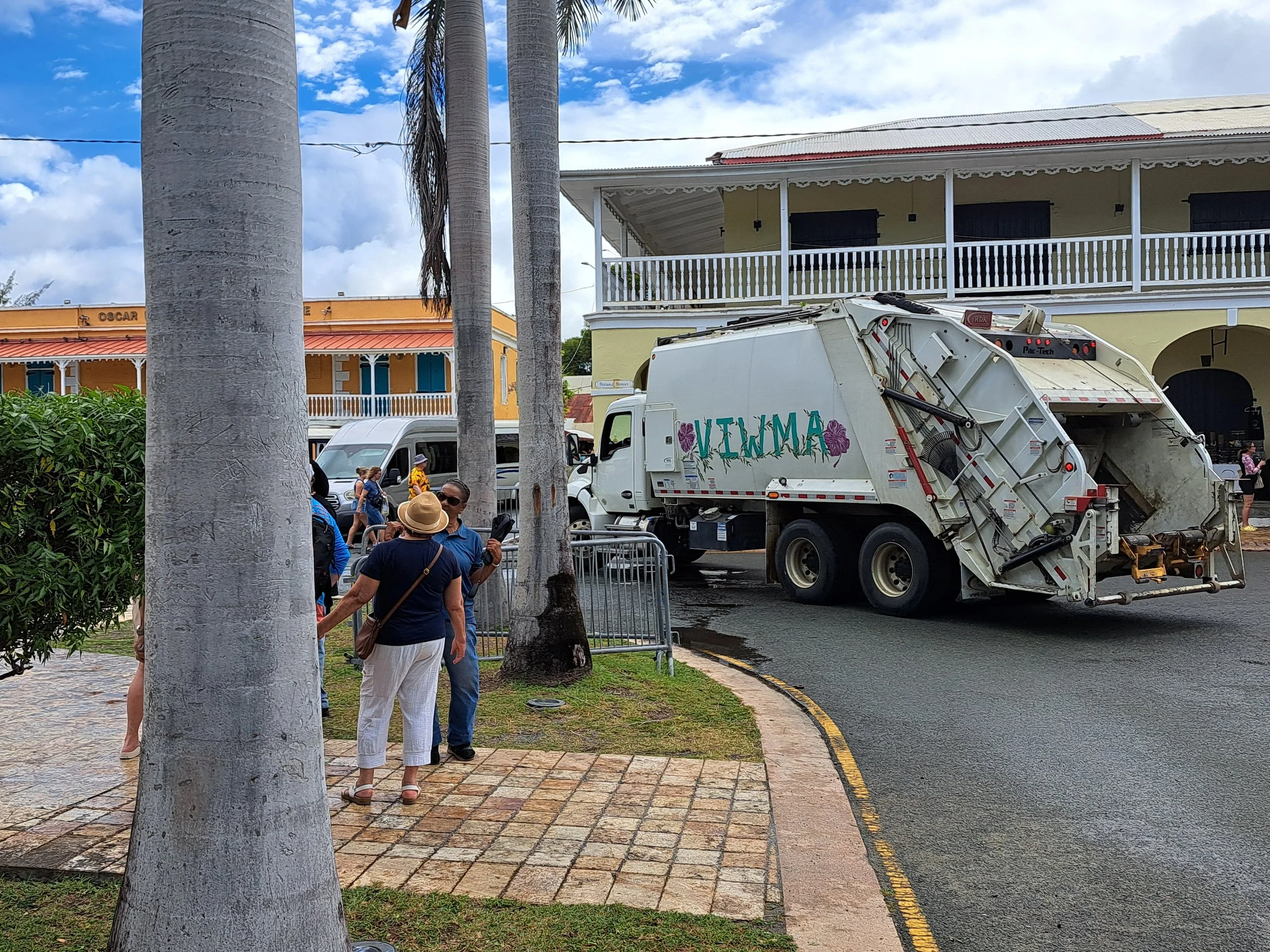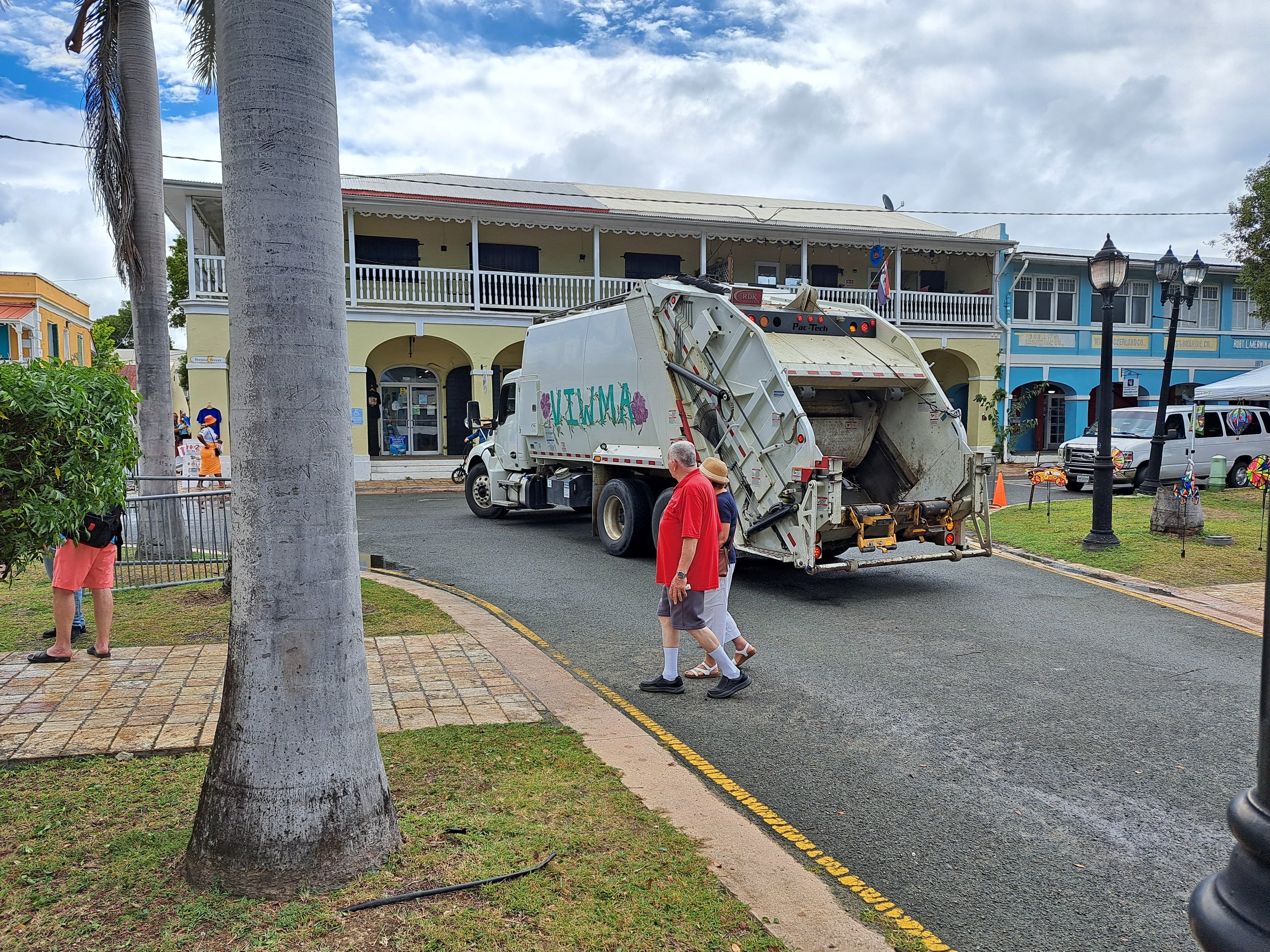 Just as the "Two-for-Tuesday" crowds began to swell near the entrance to the Ann E. Abramson Marine Facility, a massive Virgin Islands Waste Management Authority (VIWMA) trash compactor truck rolled into the town square. What followed wasn't just a routine pickup; it was a masterclass in poor planning and bad management. As the hydraulic blades began "crunching" through piles of saturated, rotting garbage, the humid, on-again, off-again rain acted as a conductor for the stench, sending a "ripe" wave of decay directly into the faces of hundreds of tourists.