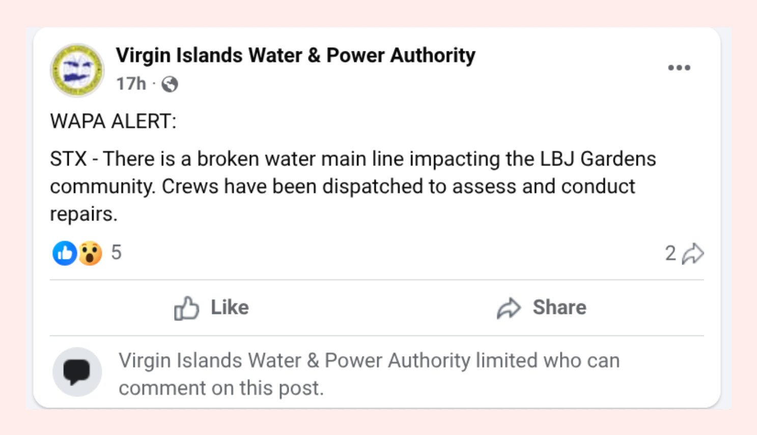 A 'Routine Alert' or a Recipe for Disaster? WAPA confirms a broken main in LBJ Gardens while the LBJ Pump Station spews raw sewage into the same neighborhood. This isn't just a maintenance issue—it's a biological 'deadly cocktail' threatening the health of every resident in Christiansted. #StCroixSun #WAPA #VIWMA #PublicHealth